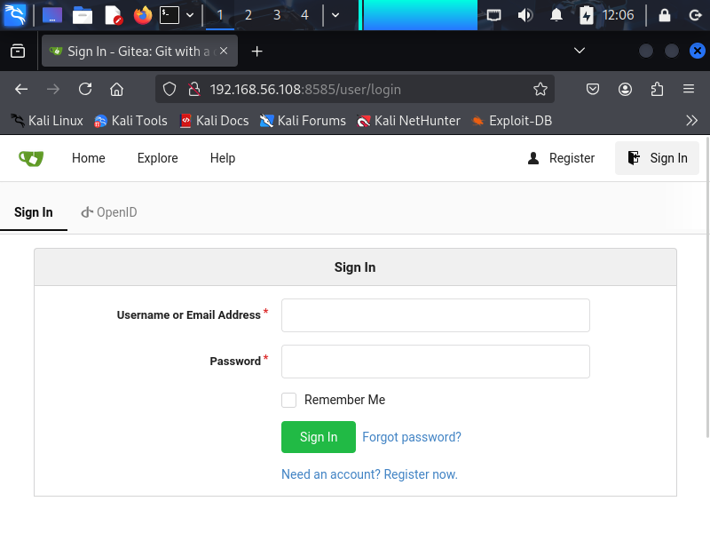 Login to the Gitea with credentials frank:frank.