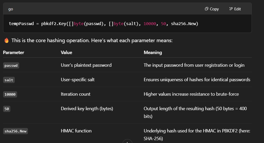 Hmm, i think i need to research about pbkdf2 algorithm that used to hash the password in this case. I think it more easy with ChatGPT. I ask ChatGPT to explain the pbkdf2 algorithm and how it work with the Gitea application.